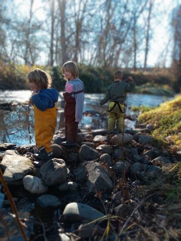 At Elements Nature School children are given freedom to play, the opportunity to explore and learn about the natural environment, and the support they need in learning how to handle risks and cooperate with their peers. With these experiences, alongside our hands on learning, our program fosters the child's development in a holistic way. Students build interpersonal skills like teamwork, communication, cooperation and problem solving. Through taking risks in the outdoors our students build confidence, resiliency and heightened self esteem, all skills which will help to improve their judgement as they grow.